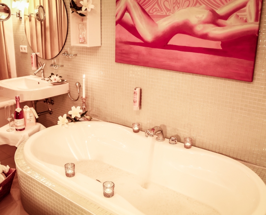 Ausgestattet im modernen, stilvollen Themen-Design. Viele Details und Komfort lassen Ihr Herz höher schlagen. Die Badezimmer bieten viel Platz und sind sehr individuell mit Badewanne und Dusche eingerichtet. Flauschige Bademäntel und duftende Essenzen stehen für Ihr Badeerlebnis im Zimmer zur Verfügung. In jedem Deluxezimmer befindet sich ein LED-TV sowie kostenfreier W-Lan Zugang.