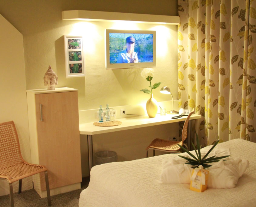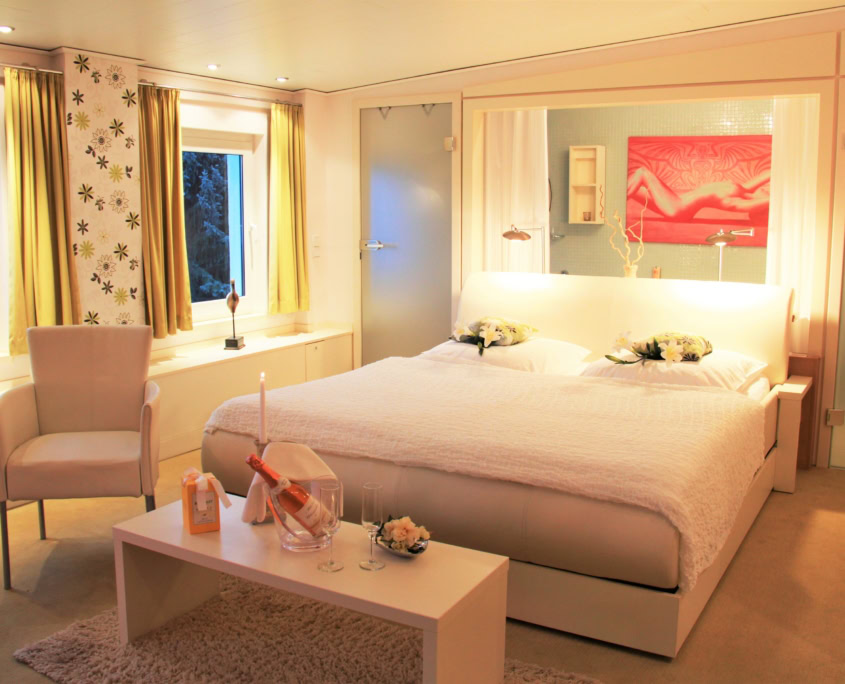 Genießen Sie hohen Schlafkomfort mit Doppelbett oder französischem Bett sowie die Badezimmer mit extra breiter Dusche. In jedem Themenzimmer befindet sich ein LED-TV sowie kostenfreier W-Lan-Zugang.